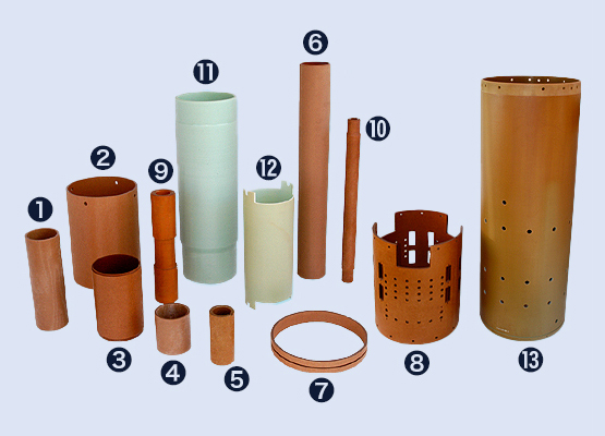熱硬化性樹脂積層管は当社における主要製品で、変圧器のタップ切換用、絶縁筒及び、操作軸、各種ヒューズ筒など、絶縁材料分野に幅広く御使用頂いております。